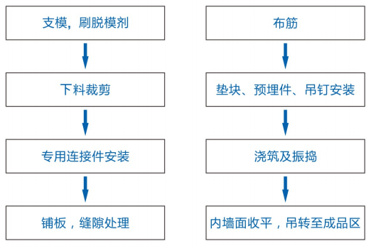 生產(chǎn)預(yù)制混凝土外墻板或構(gòu)件時,在構(gòu)件??騼?nèi),先安裝ASG反打模板并設(shè)置連接件等可靠連接及增強(qiáng)措施,保溫板上方綁扎墻體鋼筋,在其上澆筑混凝土,將保溫層與混凝十主墻體一體化預(yù)制成型的保溫與結(jié)構(gòu)一體化的外墻保溫系統(tǒng)。面層施工在構(gòu)件吊裝施工完成后進(jìn)行。